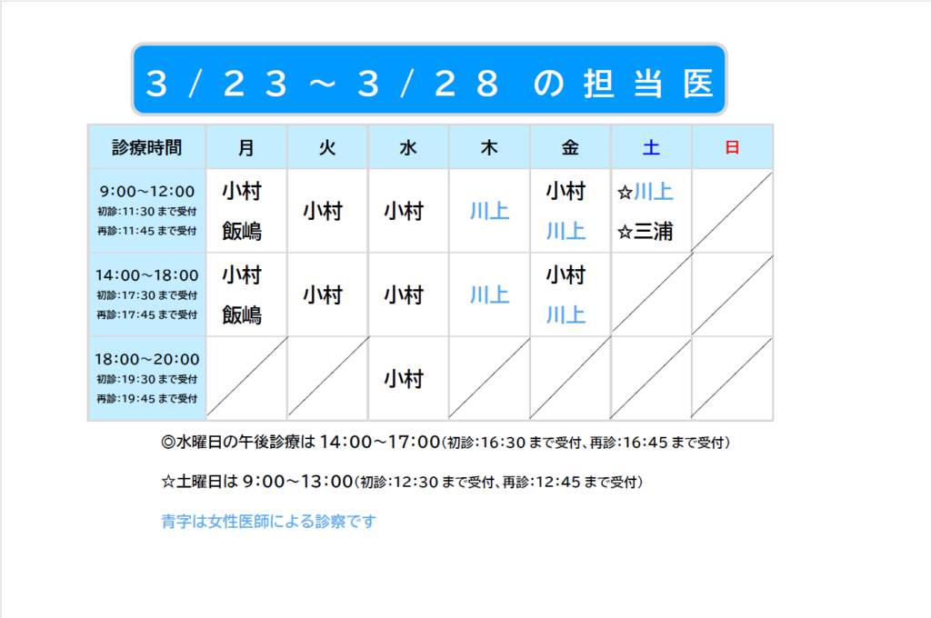 2026.03.21 3/23~3/28担当医のお知らせ
