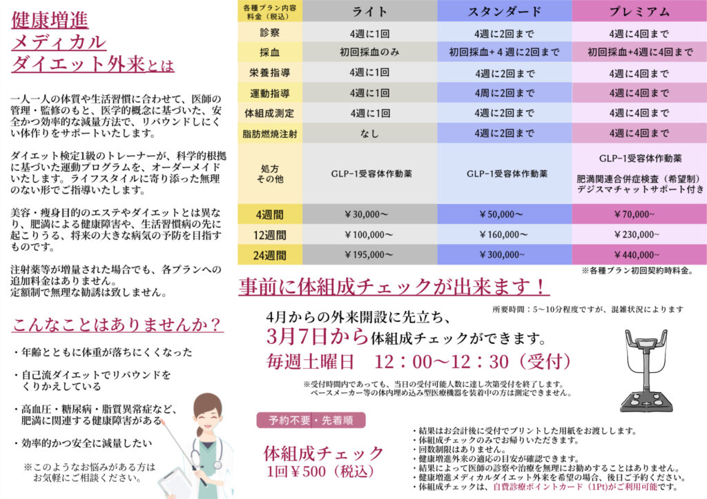 2026.03.16 2026年4月4日~健康増進メディカルダイエット外来始まります
