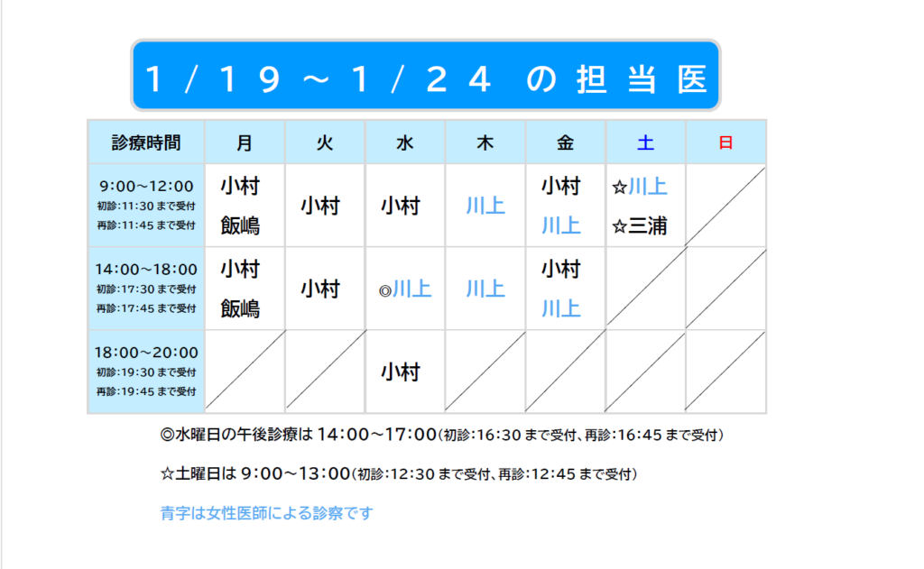 2026.01.17 1/19~1/24担当医のお知らせ