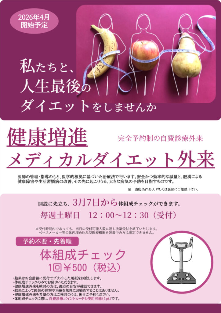 2026.03.05 2026年4月4日開始予定 健康増進メディカルダイエット外来